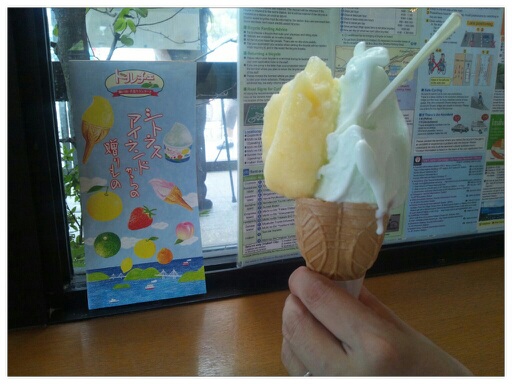 我らは、夏みかんシャーベットと伯方島の塩のジェラートをダブルで頼みました♪